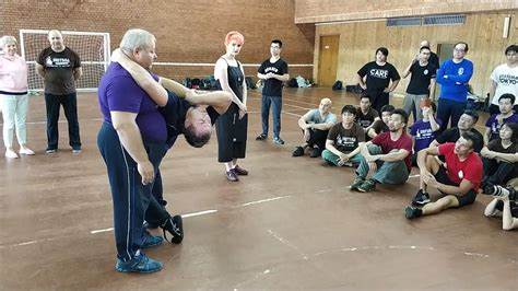Weil wir gerade schon vollmundig mit Statistiken angefangen haben: 99 % aller Kämpfe enden mit einem oder mehreren Kontrahenten auf dem Boden. Das kann in dreierlei Variationen enden: Die erste und schlimmste wäre, dass ihr bereits ausgeknockt seid, wenn ihr zu Boden geht. Hoffentlich seid ihr gut versichert. Die zweite, fast genauso schlimme ist, dass ihr auf dem Boden landet, beim Aufprall ein paar Schneidezähne verliert und von da an hilflos dessen ausgesetzt sein, das da noch kommen mag. Die dritte Variante gefällt mir aber besser, denn sie beinhaltet einen einigermaßen kontrollierten Fall und die Fortsetzung des Kampfes am Boden oder vom Boden aus. Das erfordert natürlich einiges an zusätzlichem Training und Konditionierung. Umso erschreckender ist, was für eine dampfende Pferdescheiße sich manche Kampfstile ausdenken, um sich diesen Teil des Trainings sparen zu können. Das abenteuerlichste, was ich in dieser Hinsicht erleben durfte, sind die völlig absurden und wertlosen Anti-Takedown-Techniken, die man im Wing Tsun unterrichtet (Takedown bezeichnet eine Technik, die den Gegner zu Boden bringt).